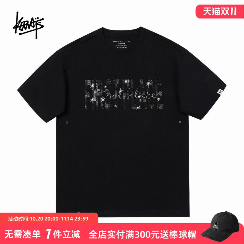 KERWATS可维斯潮牌大码男女无性别时尚满天星烫钻夏季落肩短袖t恤