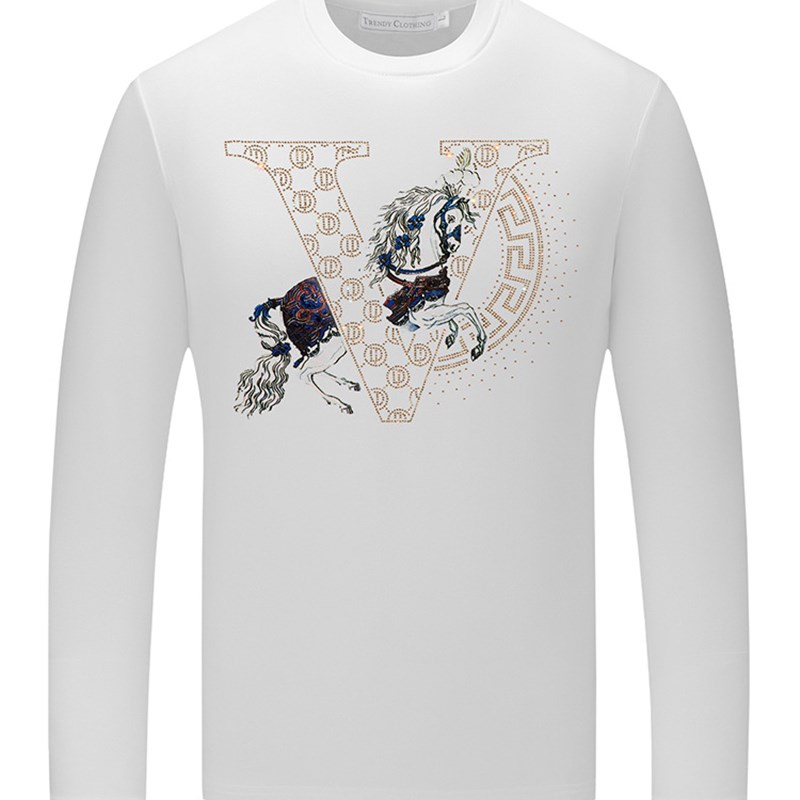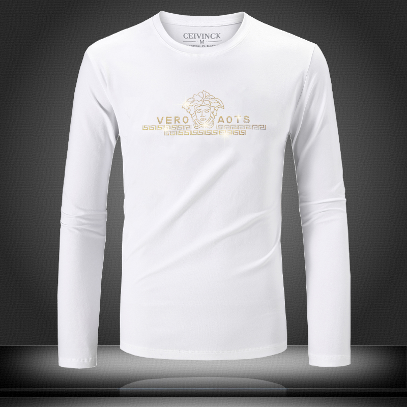 烫钻网红潮男秋装长袖t恤男士修身圆领男士打底衫加大码欧州站t恤