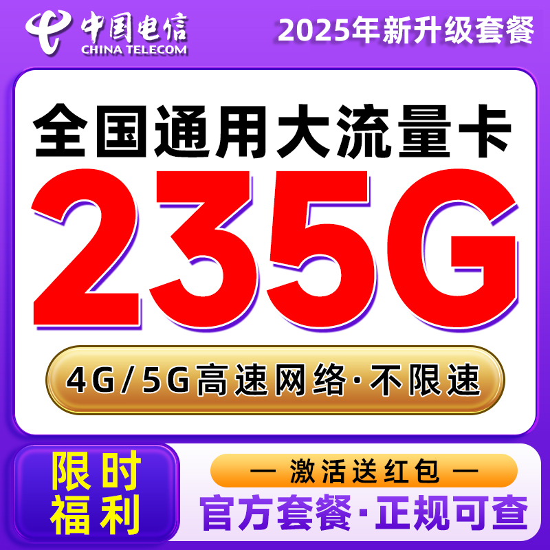 中国电信流量卡手机卡大流量电话卡5G流量卡纯上网全国通用学生卡