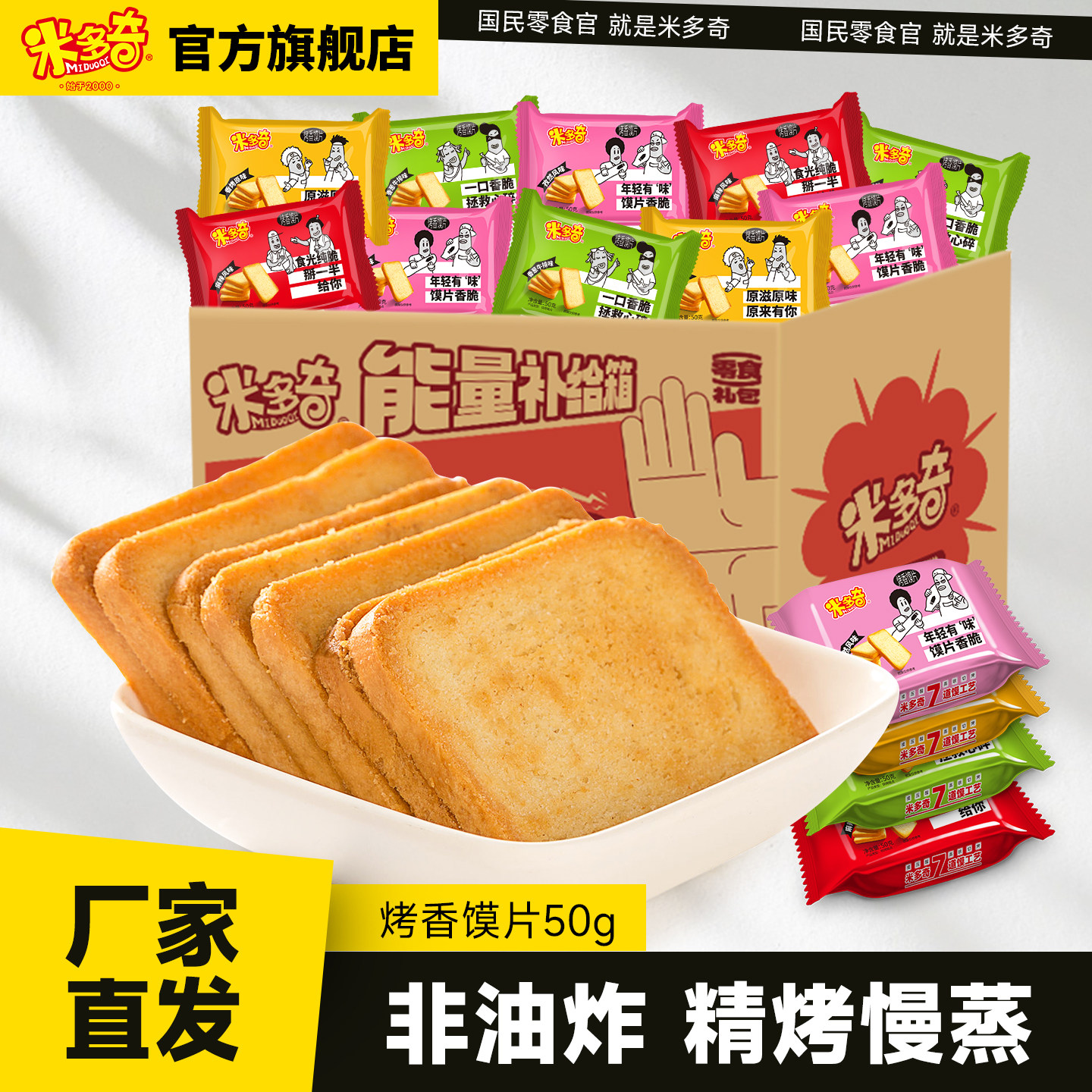 米多奇烤馍片馒头片馍干烤馍50g办公室零食休闲食品小吃饼干箱装