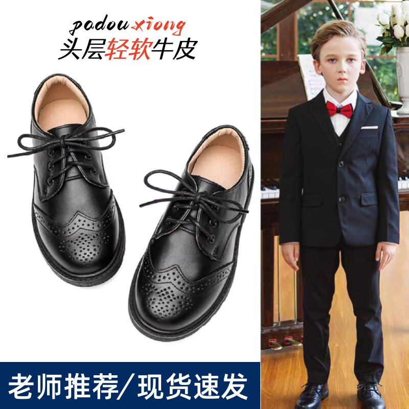 2026新款牛皮男童黑色皮鞋英伦风小学生男女孩演出鞋软底儿童皮鞋