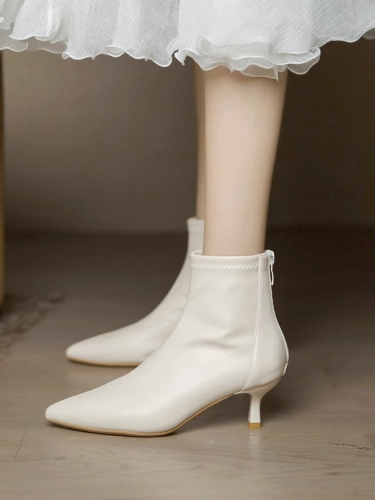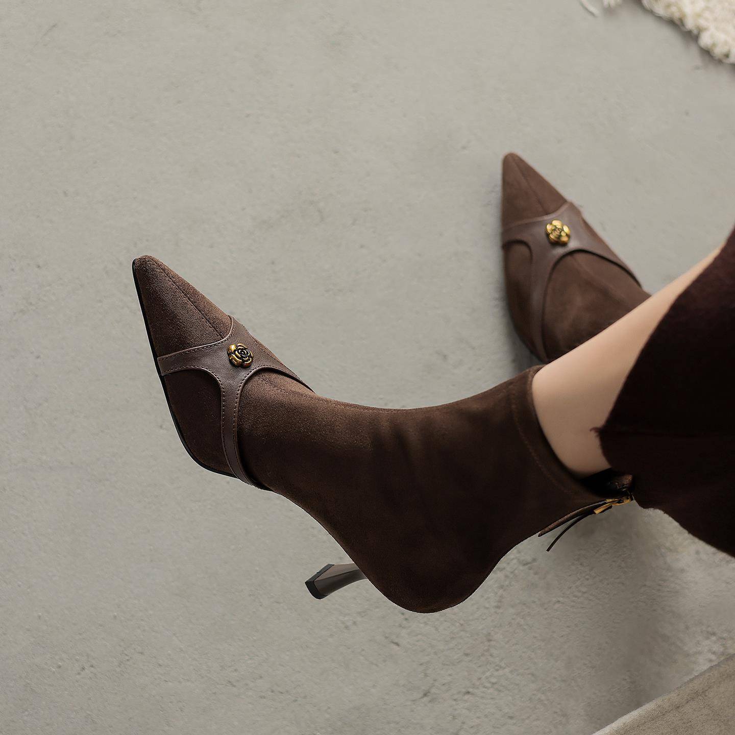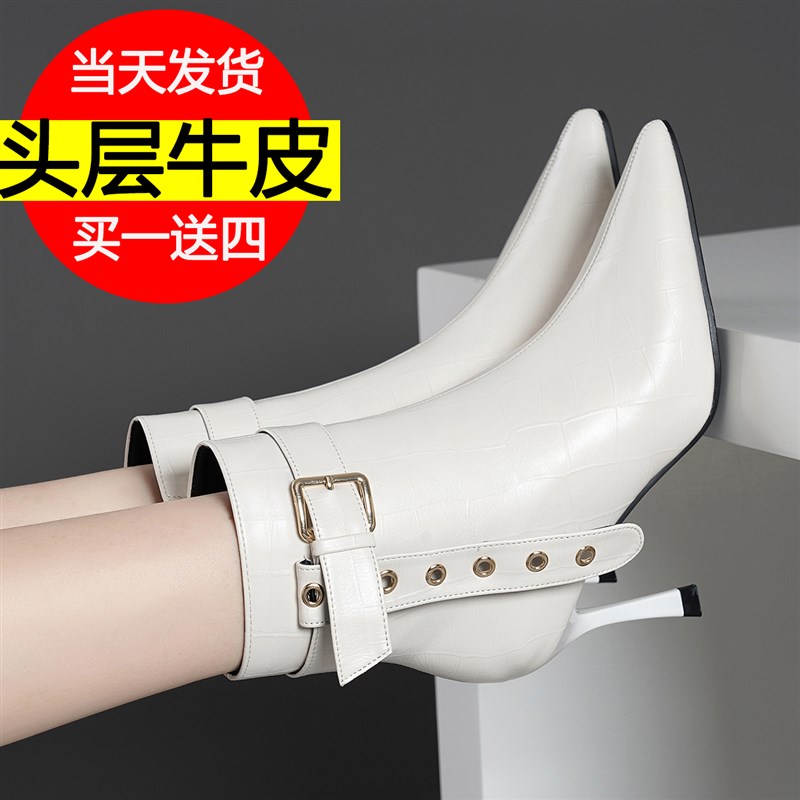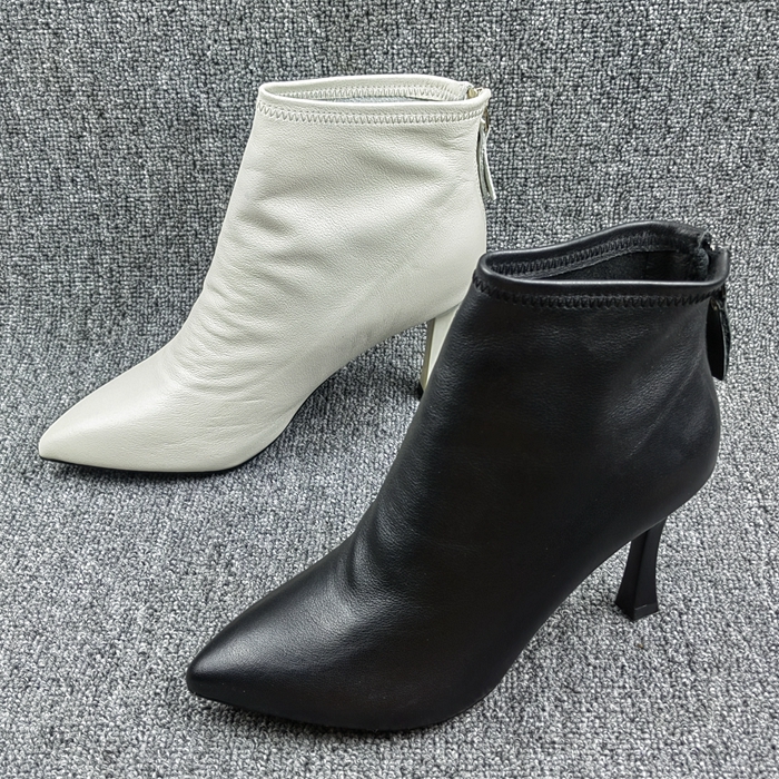 - 高跟短靴子真皮冬