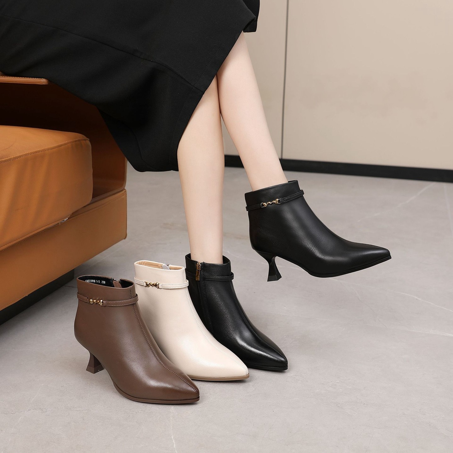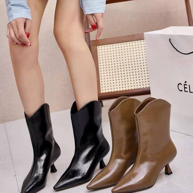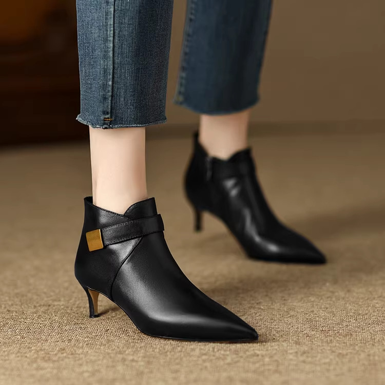 2025新款秋冬气质女鞋女士尖头小跟短靴细跟高跟鞋踝靴中跟真皮鞋