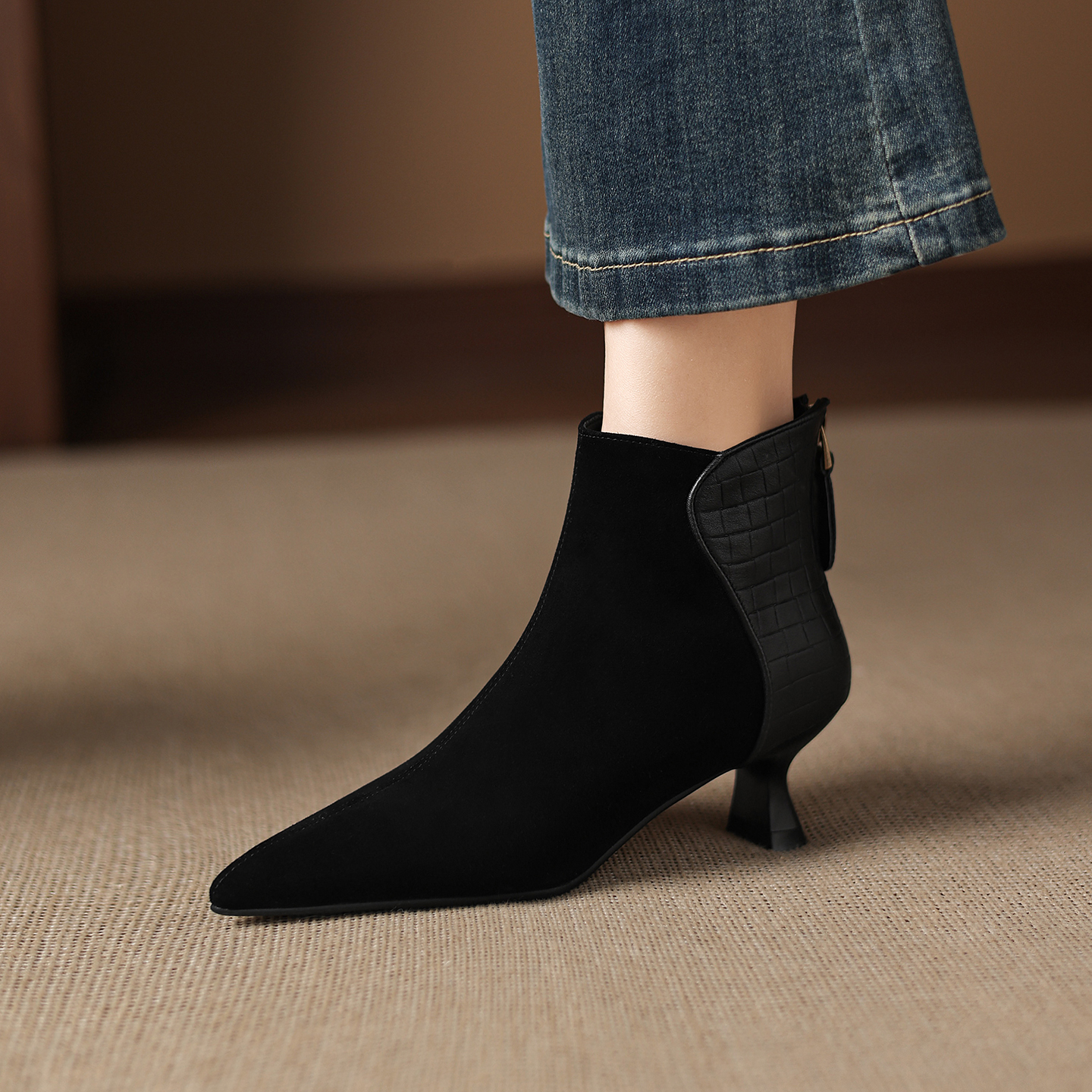 - 前拉链短靴女