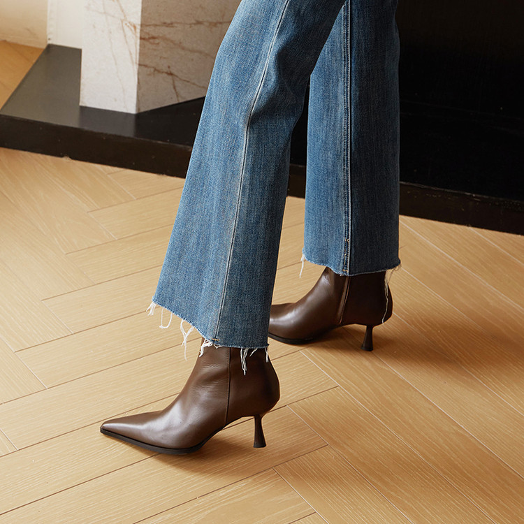 真皮尖头细跟短靴排行榜