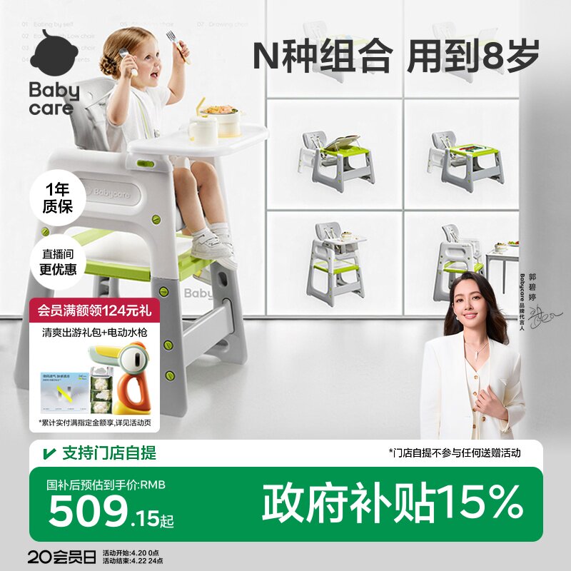babycare宝宝百变餐椅多功能婴儿餐桌椅家用安全防摔儿童吃饭座椅