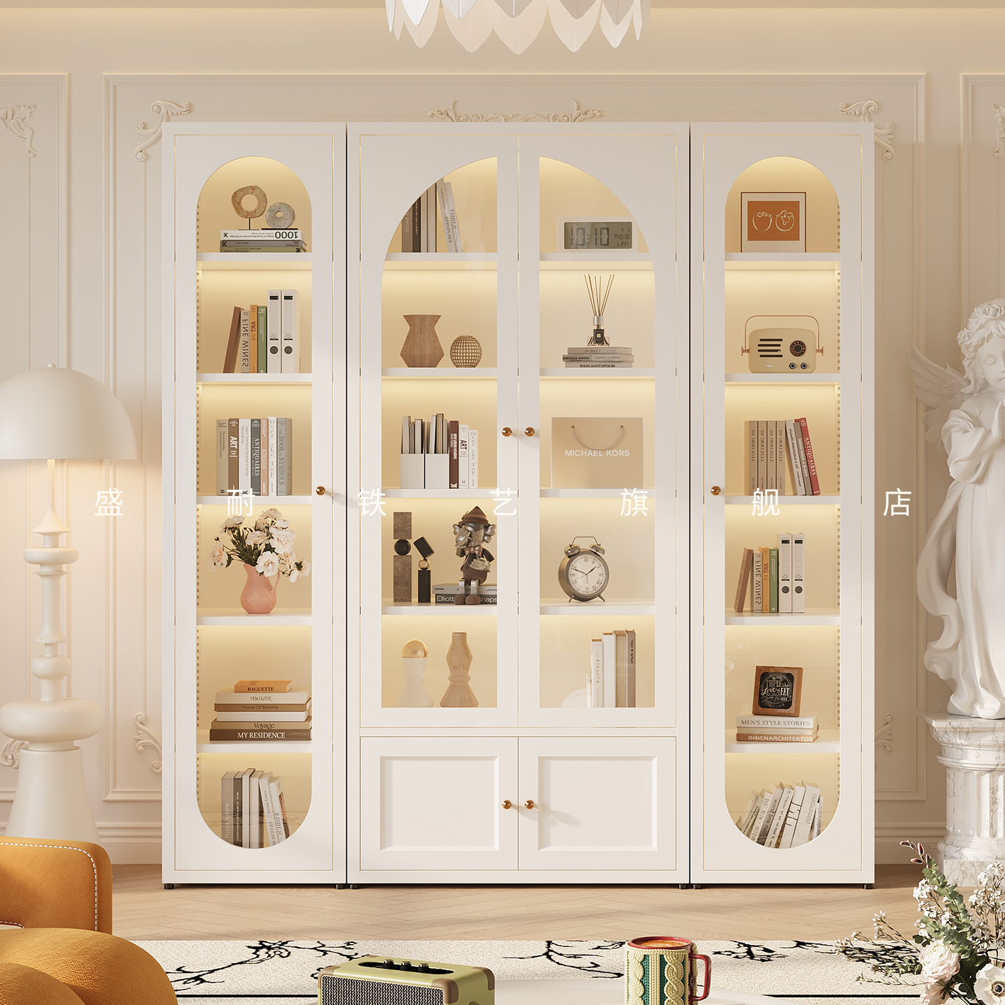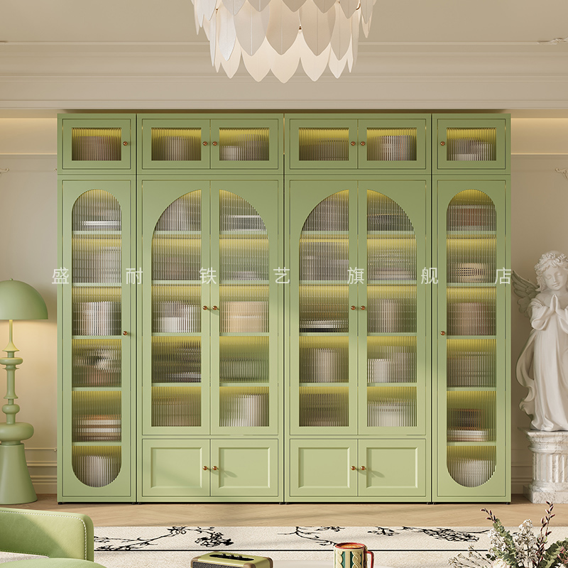 法式风书柜铁艺自由组合矮柜现代简约书架置物架落地式收纳储物柜