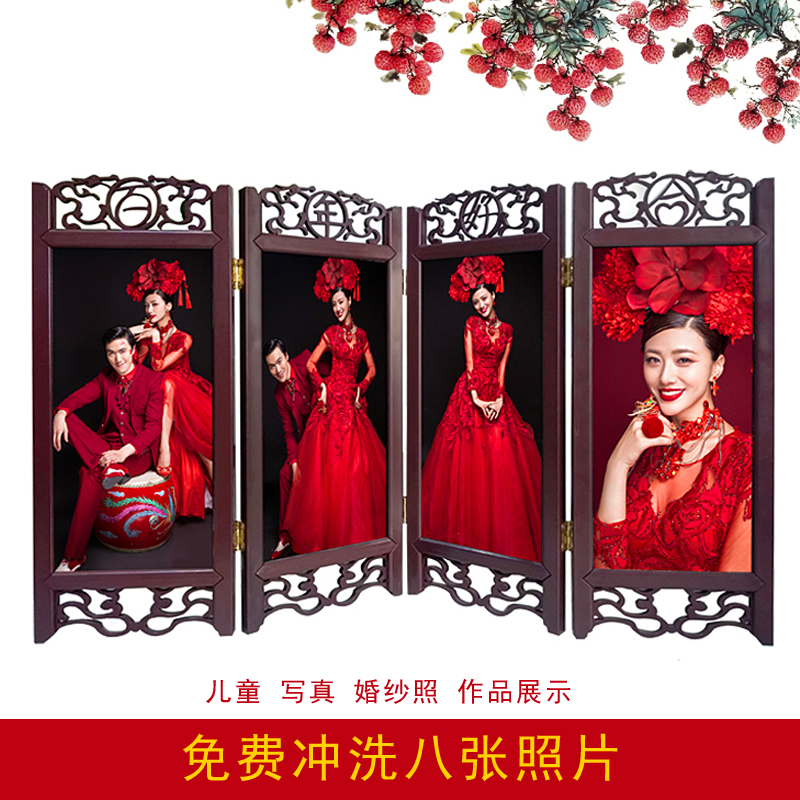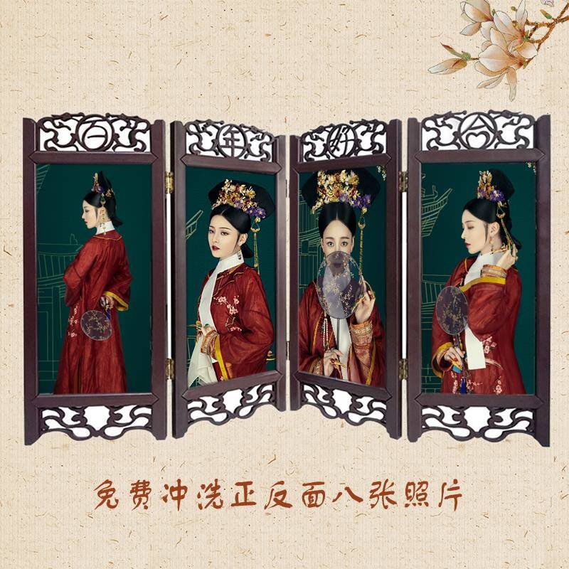 中国风盘子女人坊k仿古装写真复古怀旧四扇小屏风折叠相框摆台礼