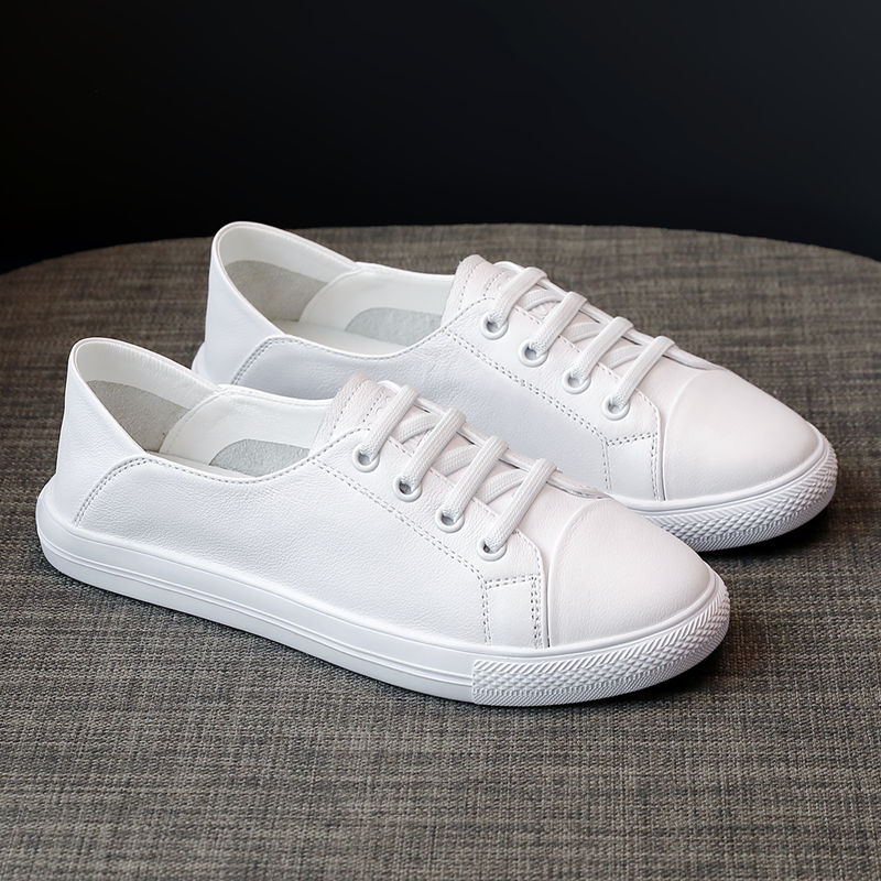 全皮小白鞋女真皮2025新款春夏网红百搭单鞋简约舒适孕妇平底鞋子