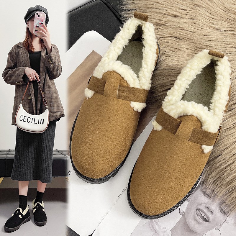 冬季女棉鞋加绒保暖一脚蹬豆豆鞋百搭时尚低帮雪地靴孕妇平底鞋女