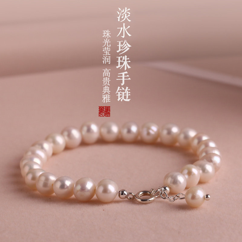 新货珠光好天然淡水珍珠手链 女款珍珠手饰手串饰品礼物扣子电镀