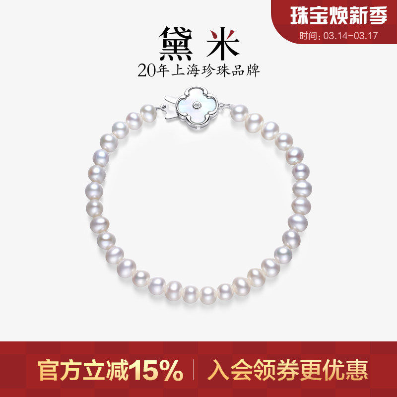 黛米珠宝 丽人 5-6mm近圆强光淡水珍珠手链 女S925银四叶草扣手串