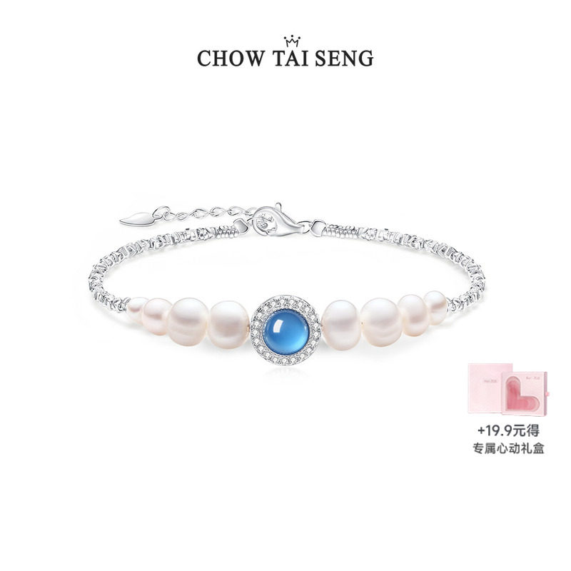 周大生海洋之心碎银子珍珠手链女款纯银轻奢高级感手饰品生日礼物
