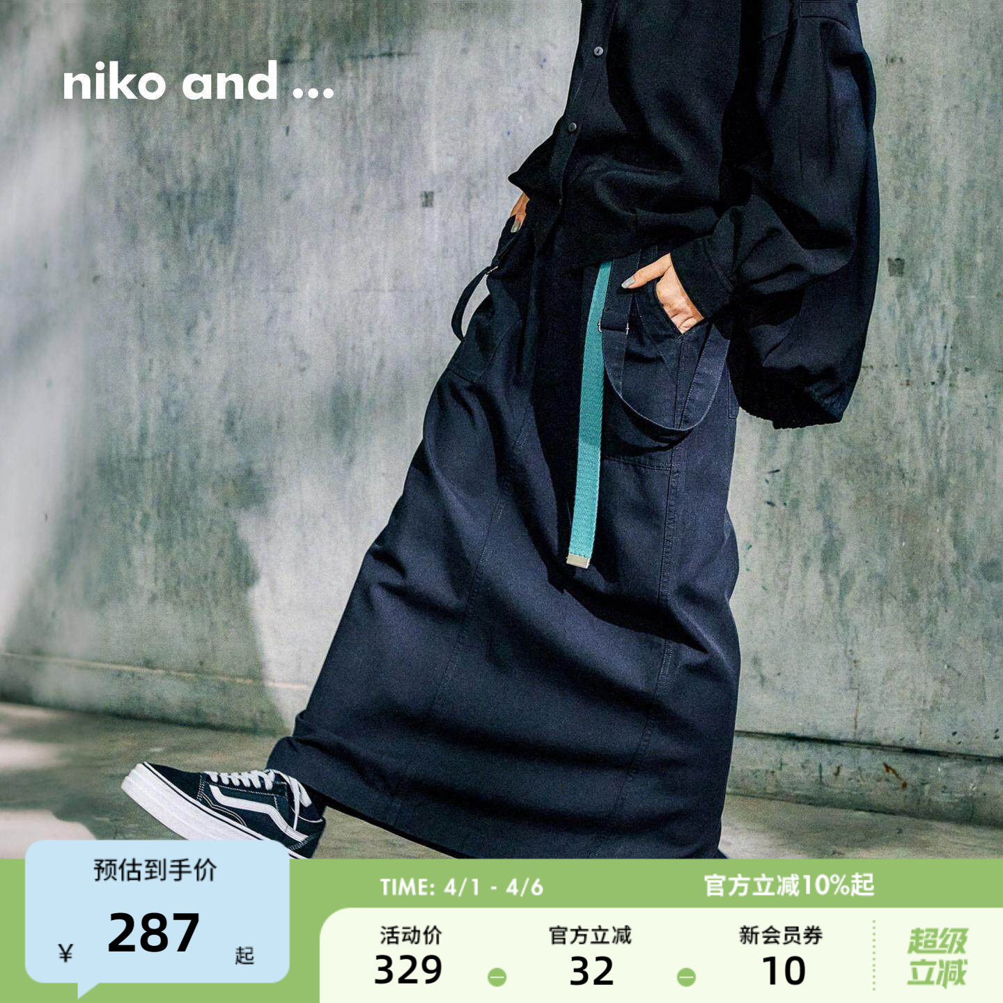niko and ...半身裙女2026夏季新款少女风两穿牛仔背带裙604021