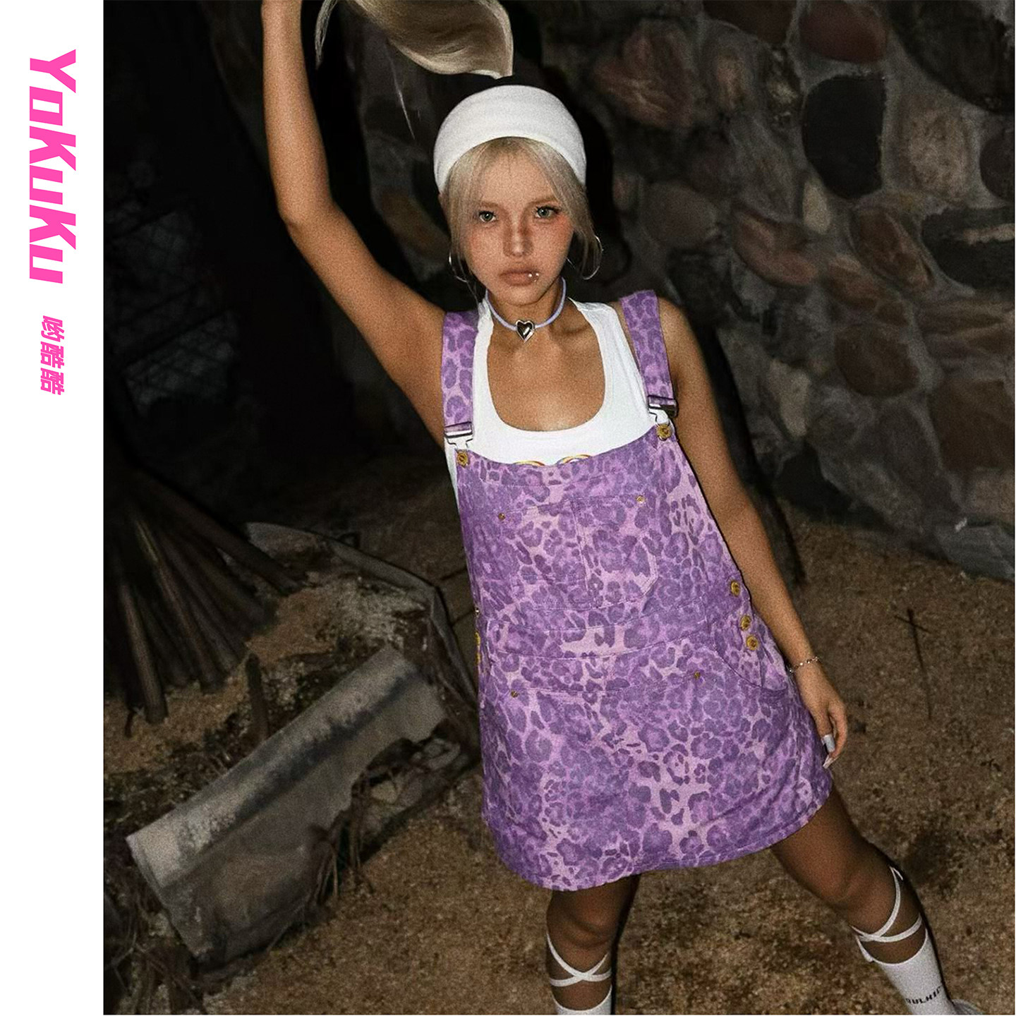 哟酷酷(彩色小豹)夏季小众设计款背带裤女豹纹减龄牛仔休闲裙裤
