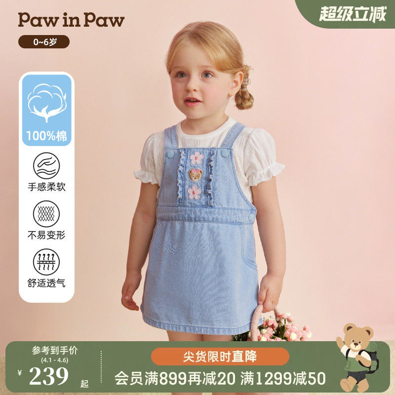【全棉】PawinPaw卡通小熊童装26年春夏季新款女宝宝牛仔背带裙