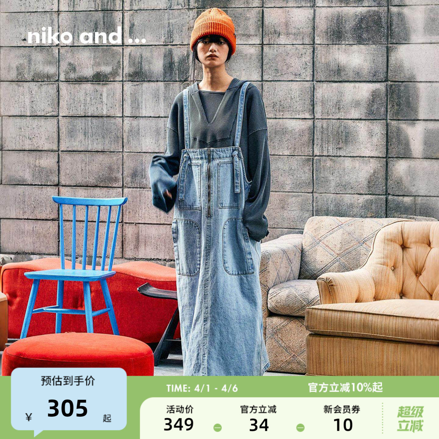 niko and ...连衣裙女2026夏季新款日系多口袋牛仔背带裙604020