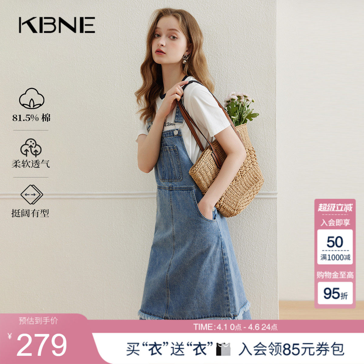 KBNE蓝色牛仔背带裙连衣裙女夏季新款棉质复古小个子宽松显瘦裙子