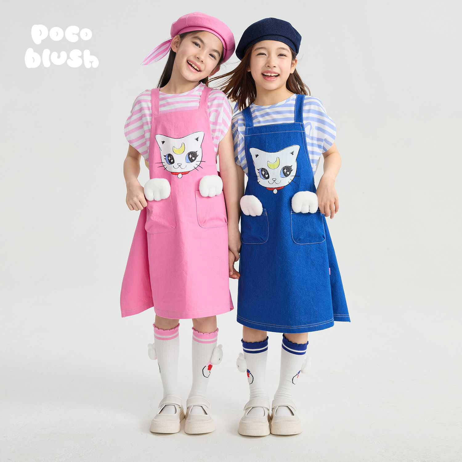 pocoblush【口袋里的猫】水洗牛仔背带裙女童夏季双层裙摆连衣裙