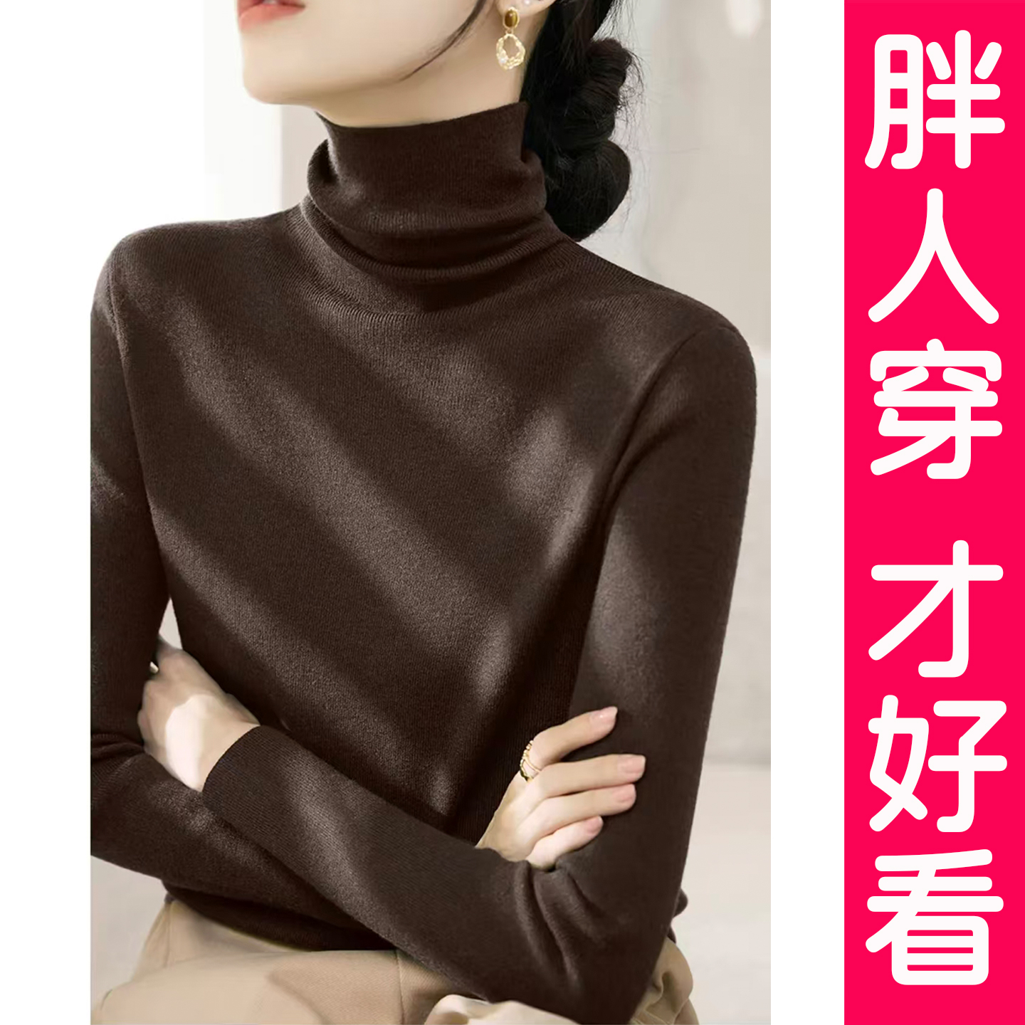 大码高领毛衣女秋冬2025新款内搭修身显瘦针织加厚打底衫上衣胖mm