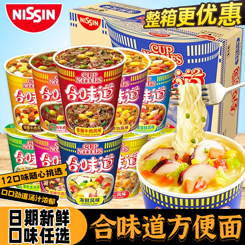 日清合味道杯面12杯泡面整箱批发桶装方便面大杯速食食品旗舰店