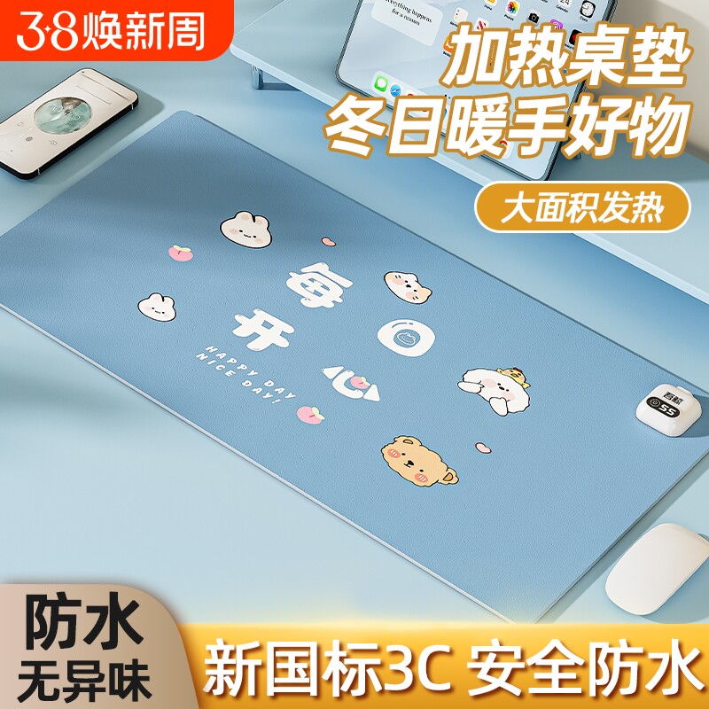 加热鼠标垫办公室桌面加热暖桌垫女生高颜值防水写字发热桌垫暖手