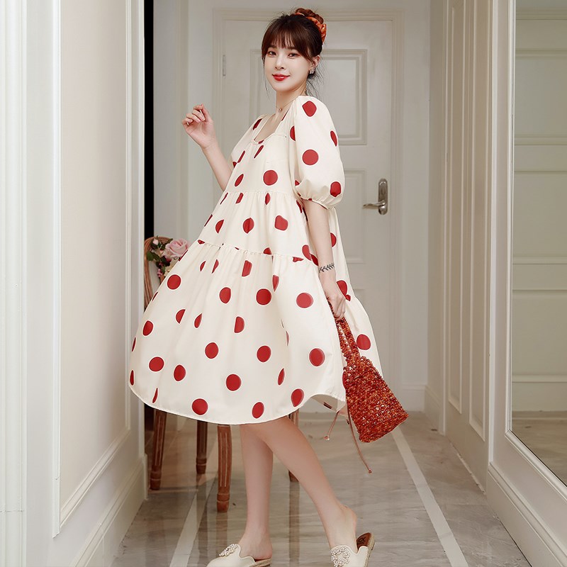 孕妇夏装连衣裙2023新款中长款波点雪纺假两件夏季宽松薄款裙子潮
