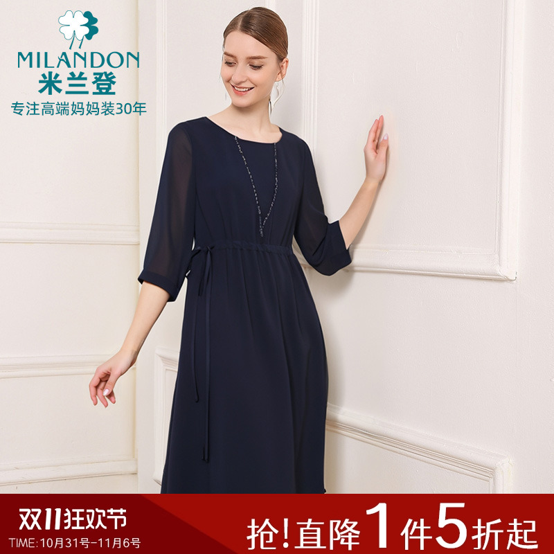 米兰登中老年妈妈装2025年夏季新款圆领气质中长款雪纺连衣裙女潮