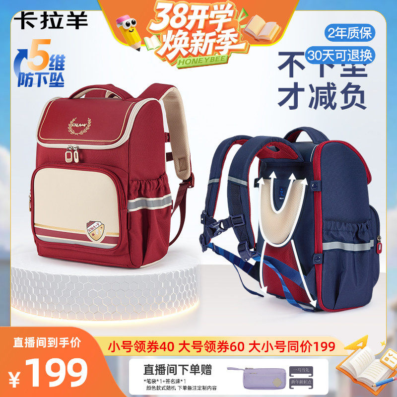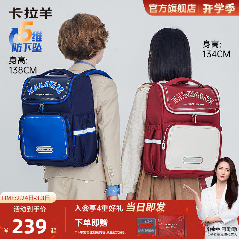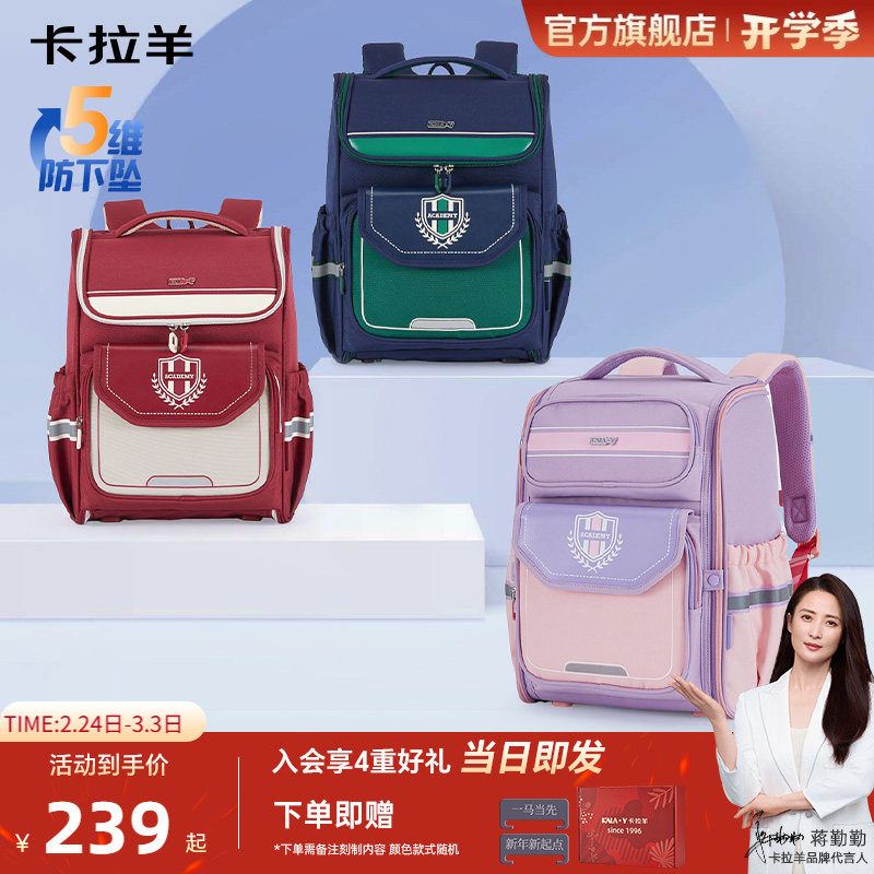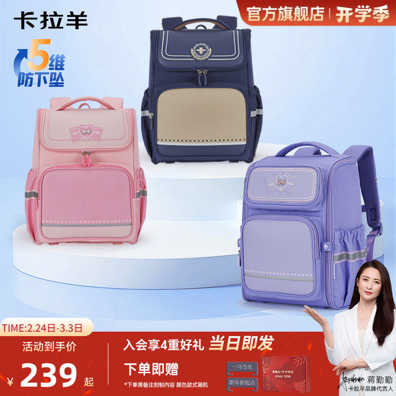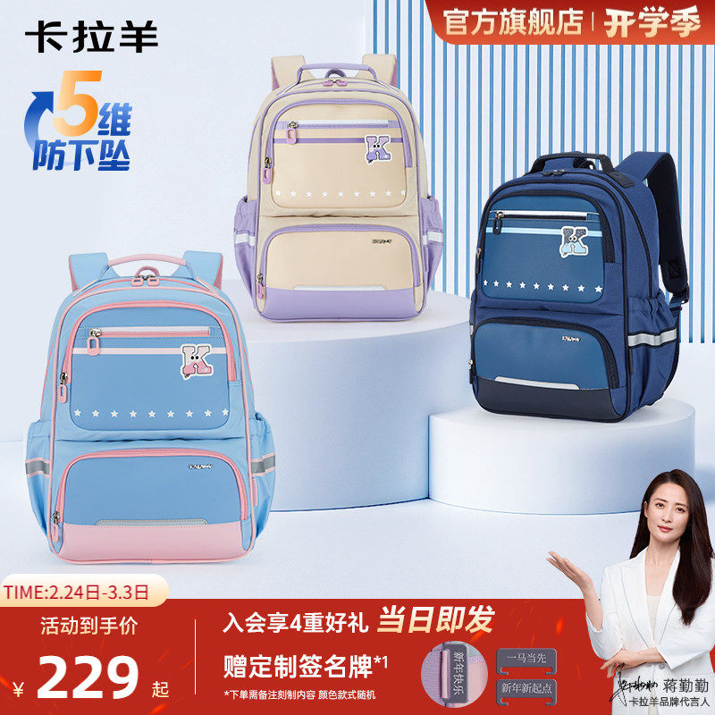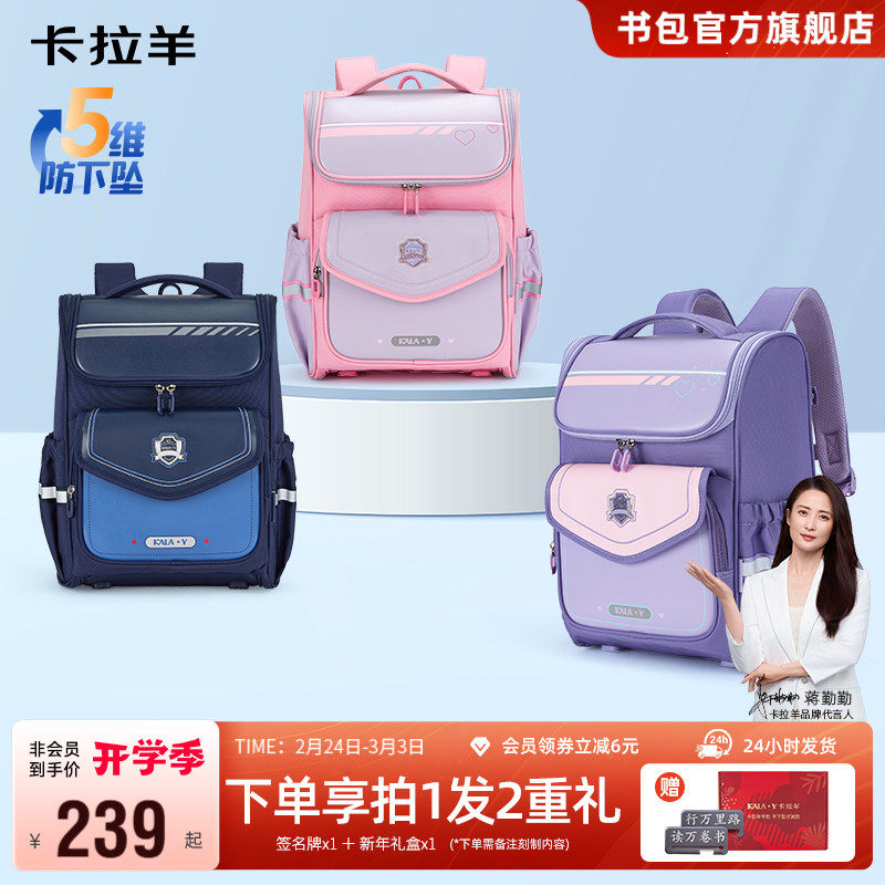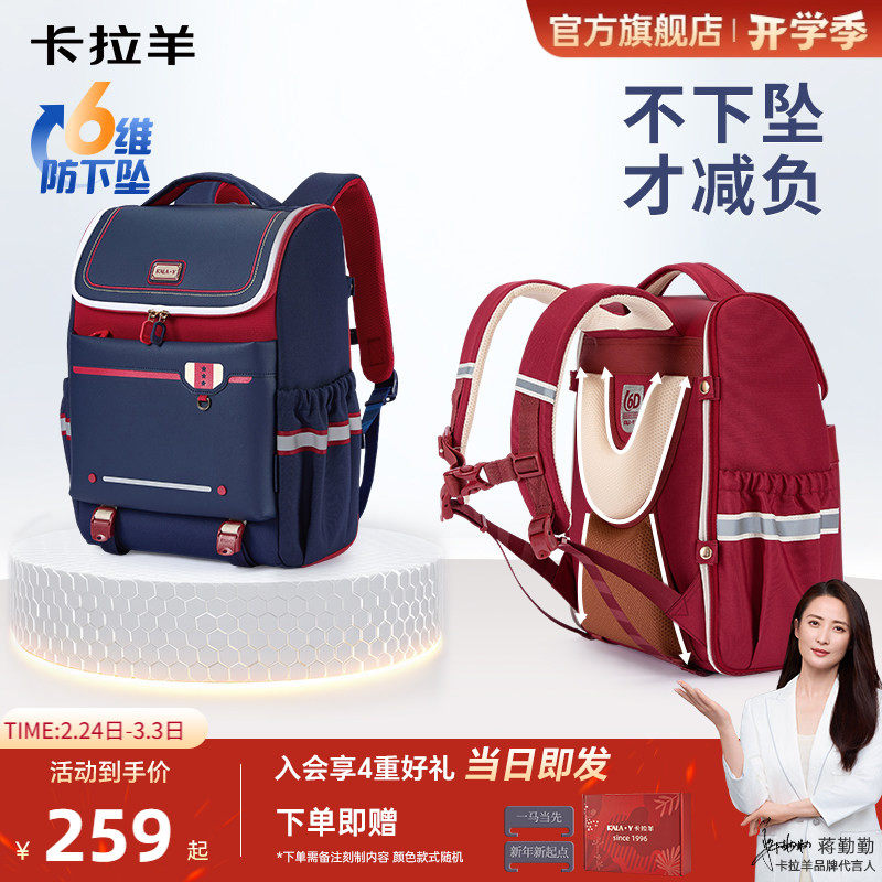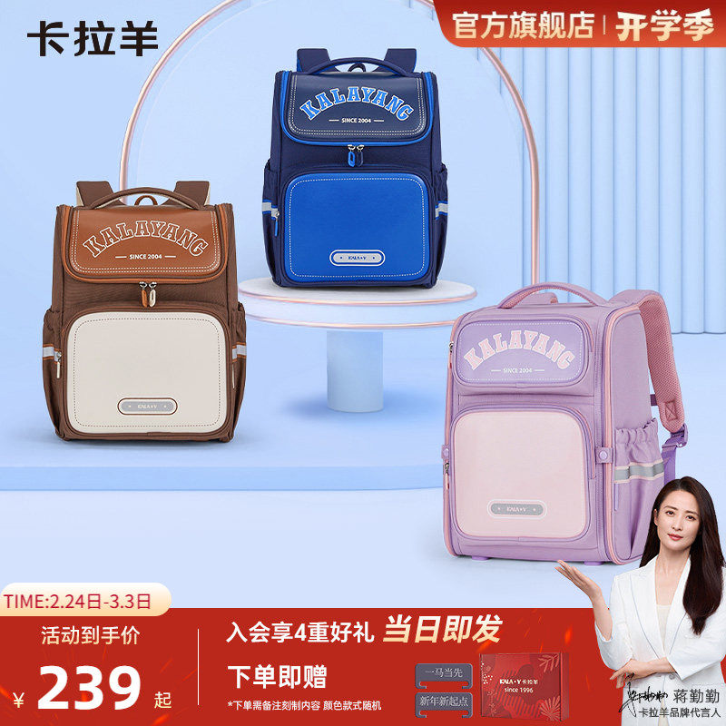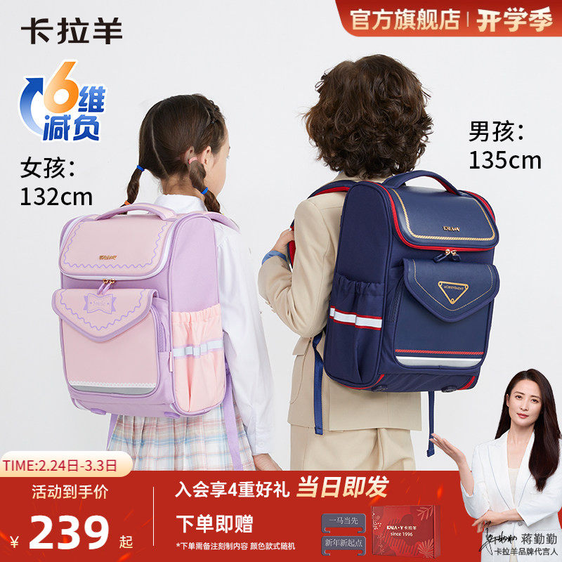 【蒋勤勤代言】卡拉羊1-4-6年级小学生减负防下坠大嘴书包女新款幼升小儿童双肩包男大容量多隔层背包防泼水