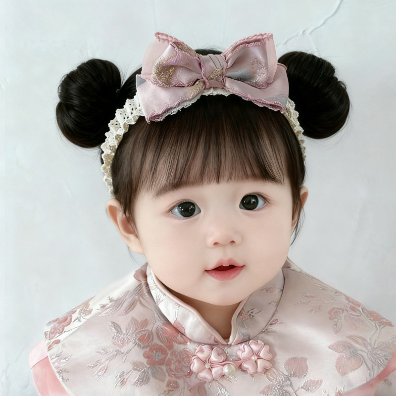 新中式婴儿蝴蝶结发带女宝宝百天周岁生日宴头饰汉服唐装拍照配饰