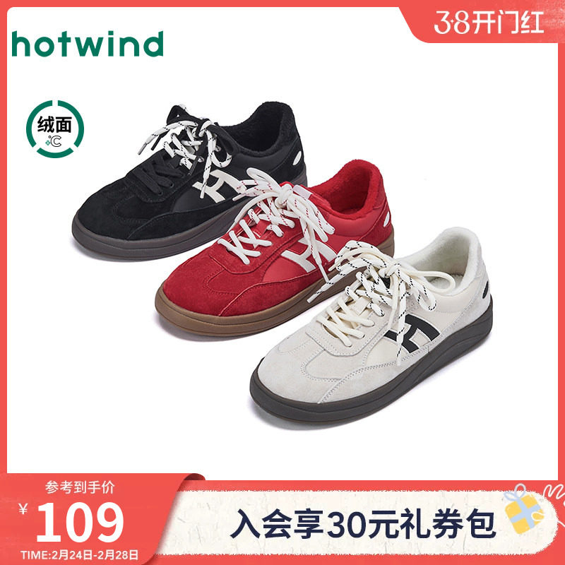 热风红色德训鞋女2025年冬季新款加绒运动休闲鞋百搭小白鞋女鞋子