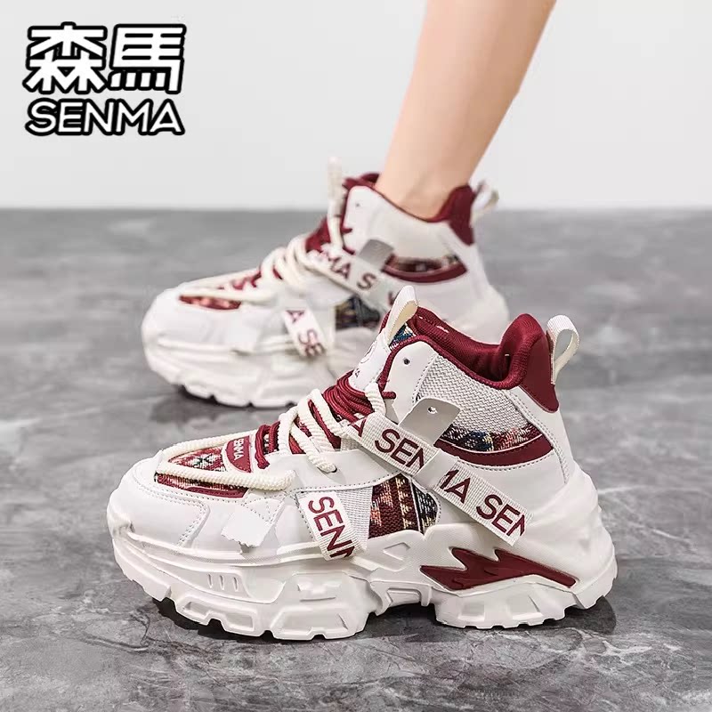 森马女鞋春季新款高帮加绒棉鞋运动休闲跑步厚底增高超火老爹潮鞋