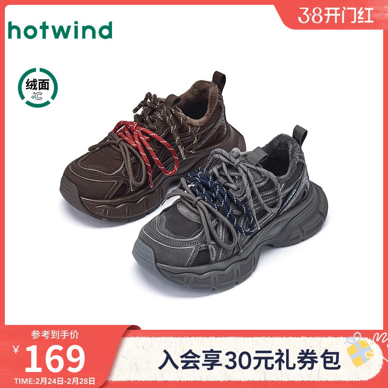 热风厚底老爹鞋女2026年春季新款棕色运动休闲鞋复古加绒跑步女鞋