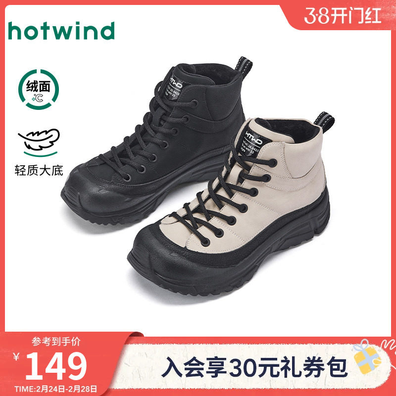 森马“马年限定”男女鞋情侣款冬季加绒高帮运动休闲增高小白板鞋