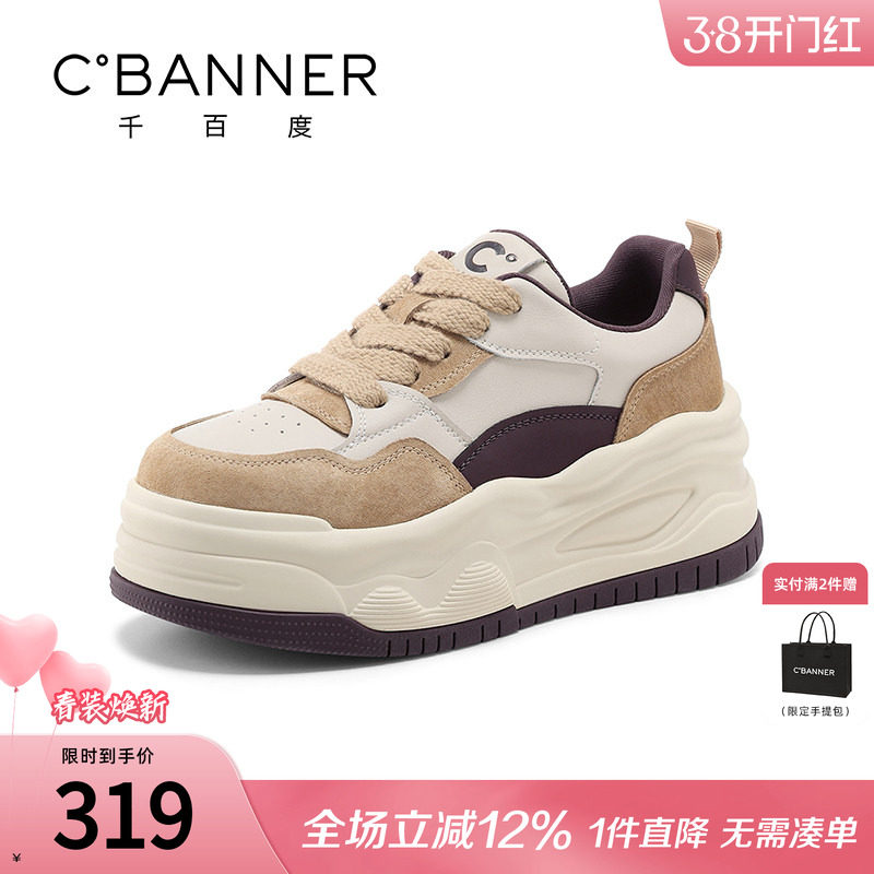 千百度女鞋冬季新款厚底小白鞋加绒棉鞋增高板鞋子女百搭运动女鞋