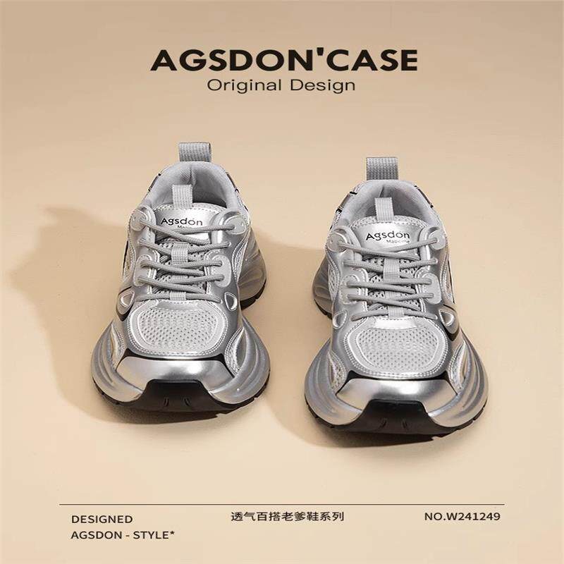 奥古狮登厚底增高银色老爹鞋女2026新款春冬加绒休闲运动女鞋好看