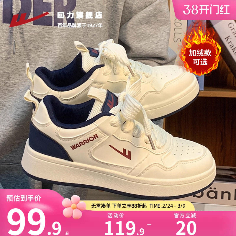 回力女鞋板鞋男女同款秋冬加绒百搭情侣休闲鞋子厚底小白鞋运动鞋