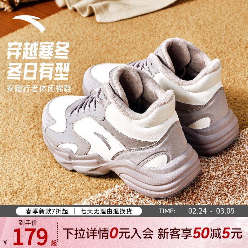 安踏行者丨加绒保暖高帮皮面大棉鞋男女鞋2025冬季加厚运动休闲鞋