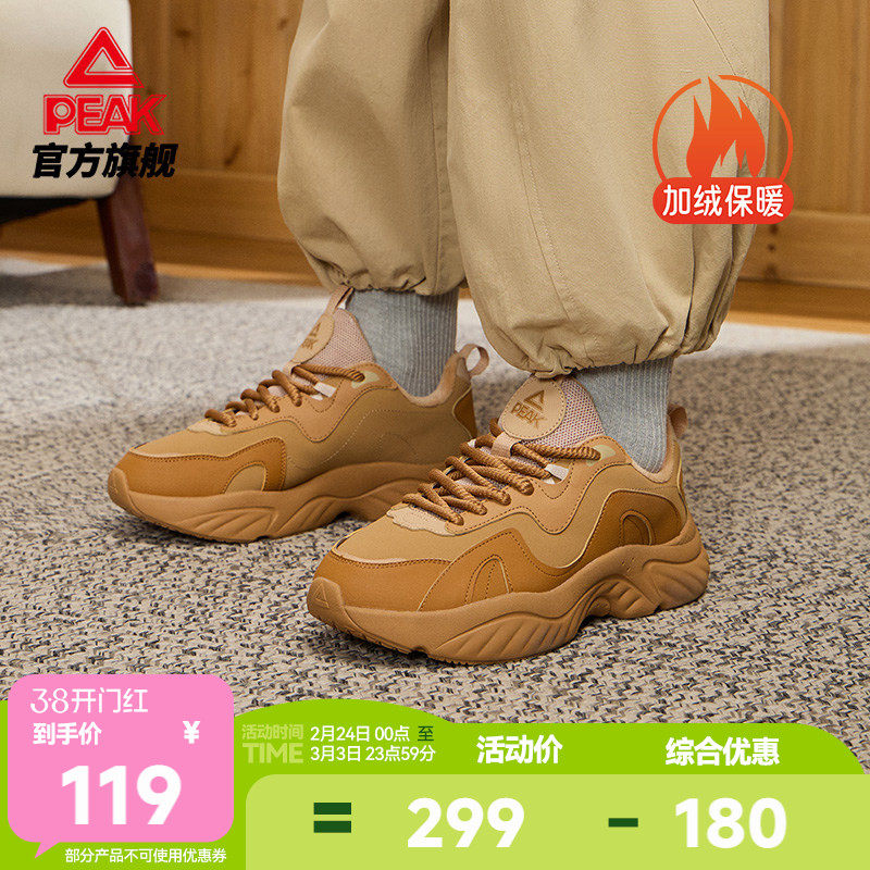 小鹿鞋361加绒女鞋运动鞋2025冬季保暖加毛鞋女大棉鞋休闲老爹鞋