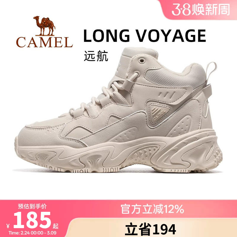 骆驼远途运动鞋女秋冬季女鞋中高帮加绒棉鞋女款鞋子防滑休闲鞋女