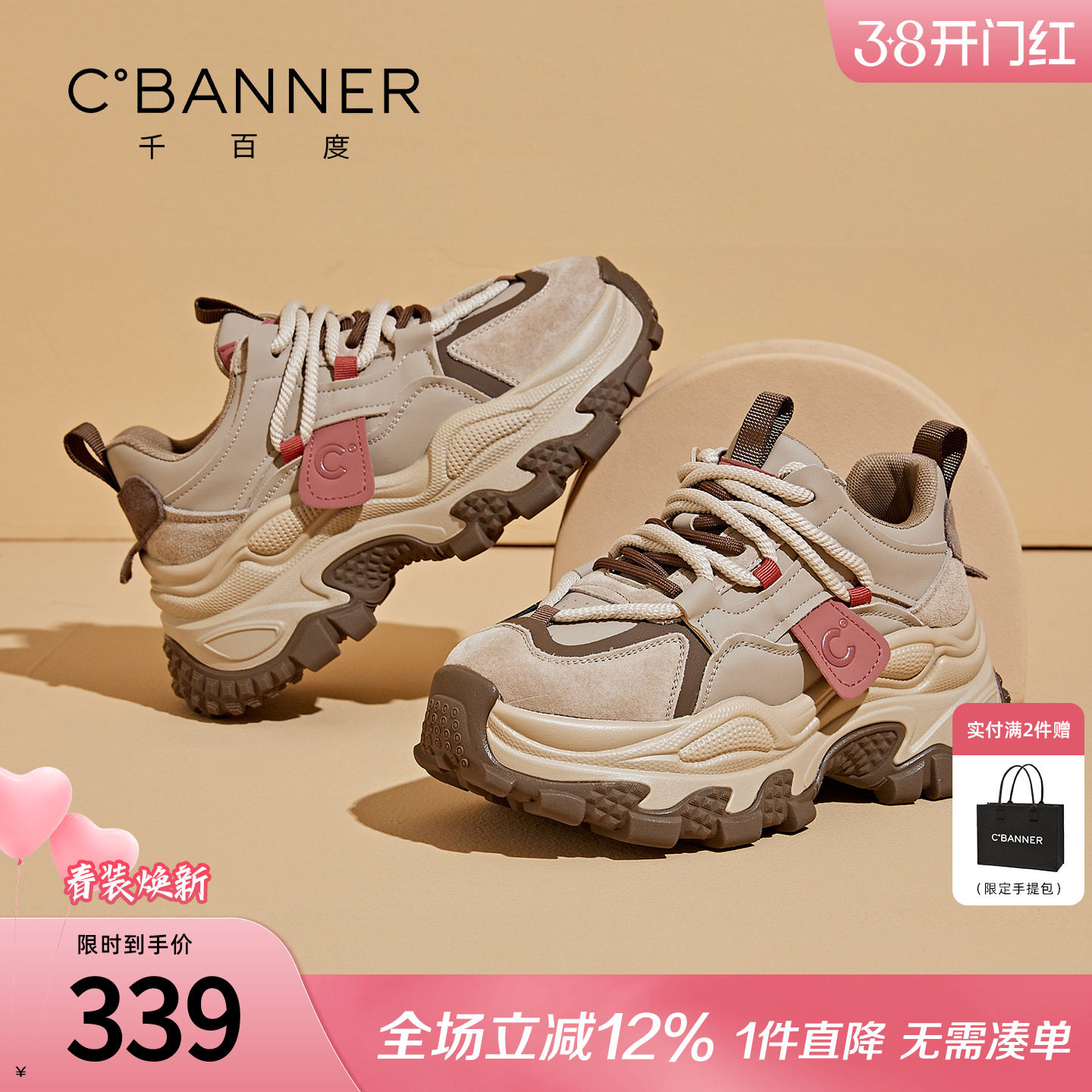 千百度女鞋冬季新款加绒老爹鞋女款棉鞋厚底百搭休闲鞋子运动鞋女