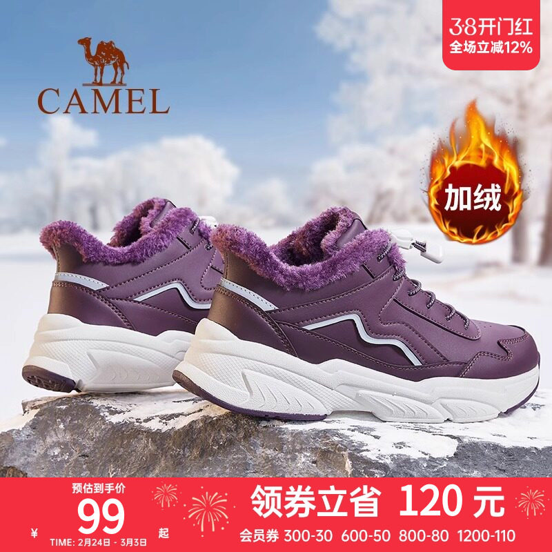 骆驼远途运动鞋女冬季新款女鞋加厚加绒保暖棉鞋防水防滑休闲鞋子