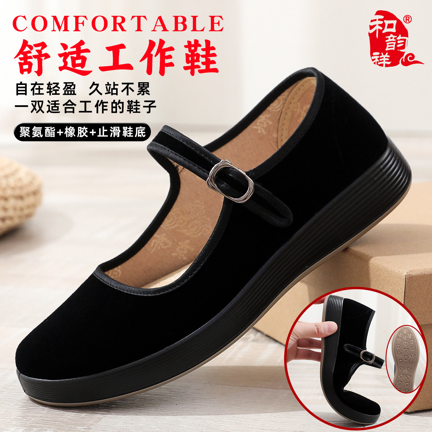 工作黑色单鞋新式老北京布鞋女款正牌旗舰店平底工作鞋软底妈妈鞋
