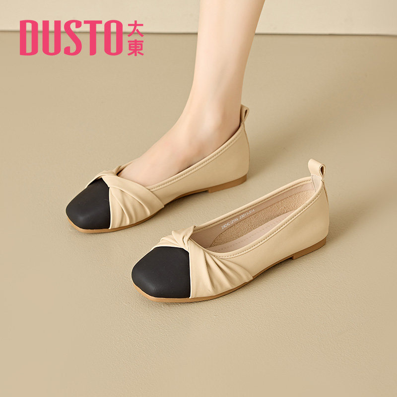 大东旗舰店女鞋2025秋季新款浅口单鞋蝴蝶结方头平底工作鞋通勤女