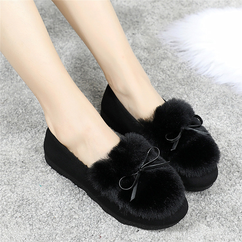 2025秋冬新款毛毛鞋女平底工作鞋外穿加绒保暖棉鞋百搭软底豆豆鞋