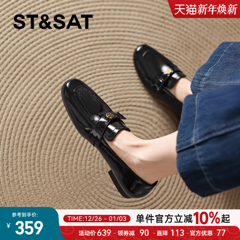 星期六山茶花乐福鞋女2025新款秋冬一脚蹬黑色平底工作鞋单鞋皮鞋