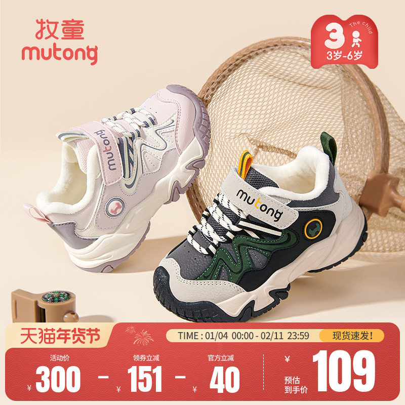 牧童儿童运动鞋2025秋冬新款女童减震户外小童鞋加绒保暖男童鞋子