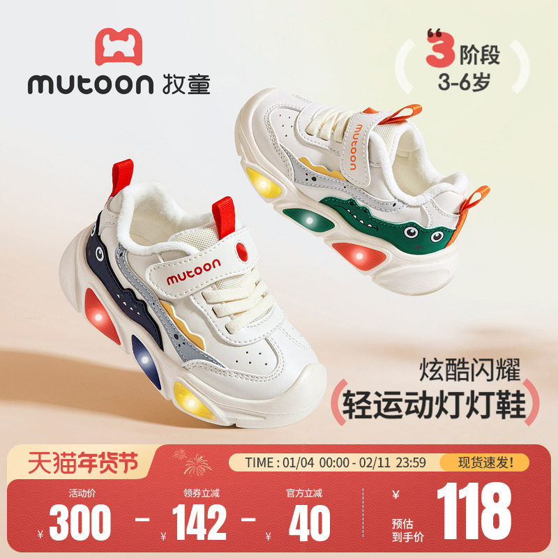 牧童男童闪灯运动鞋2025秋冬新款儿童轻便减震软底加绒保暖女童鞋