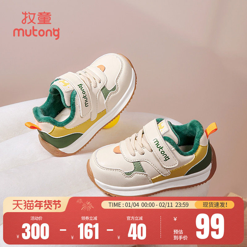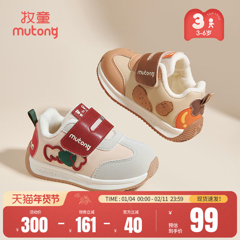 牧童儿童运动鞋秋冬新款轻便缓震女童红色祝福鞋幼儿园加绒男童鞋