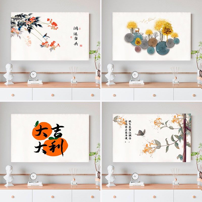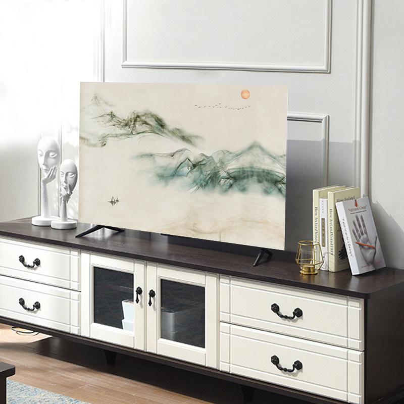 简约布艺55寸43电视套防尘罩挂式曲面家用电视罩山水液晶电视机罩